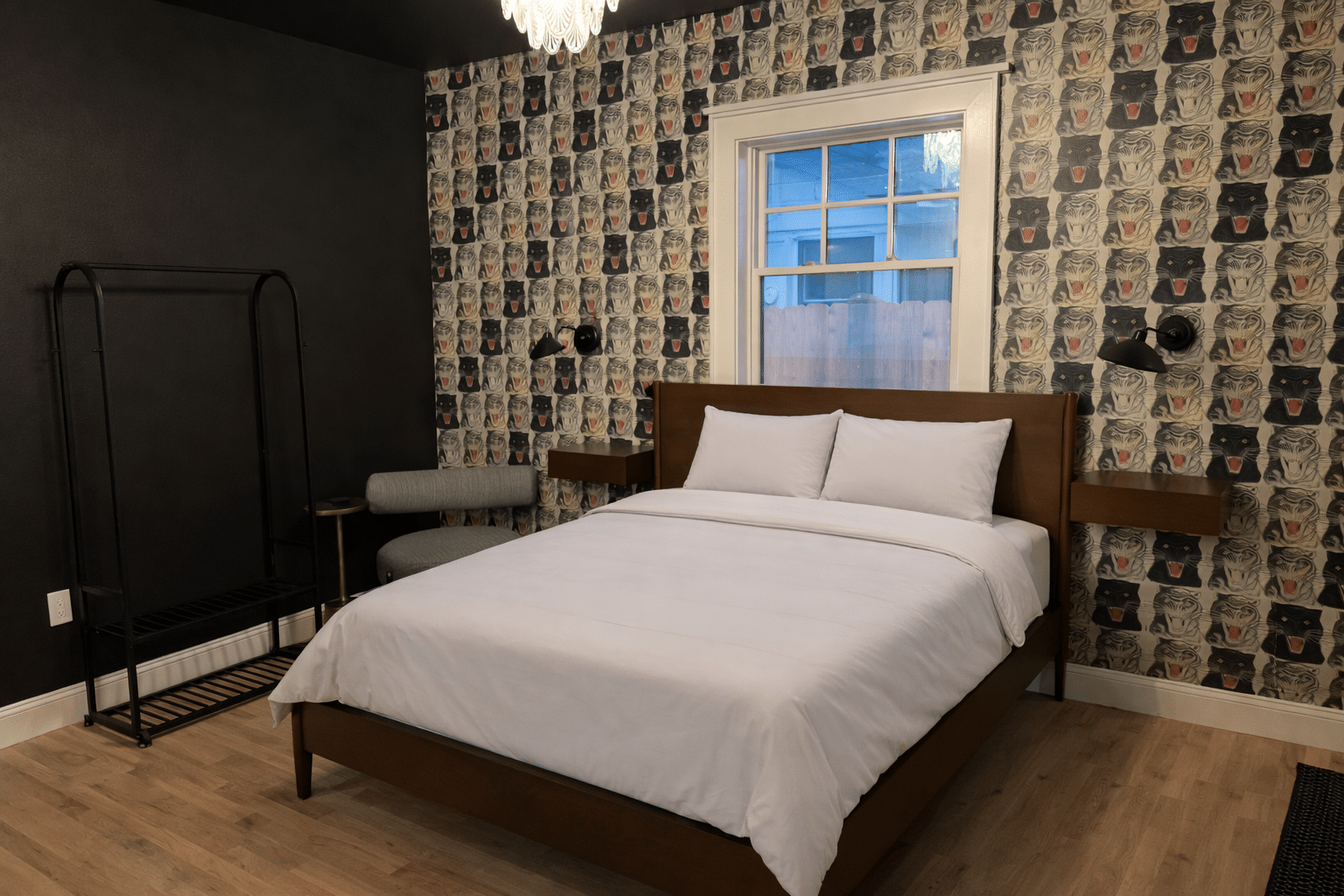 The Oppenheimer Room channels intensity and reflection. Dark tones meet bold wallpaper, a reminder of creativity born in high-stakes moments. It’s a space for deep thought and serious conversation. Book now